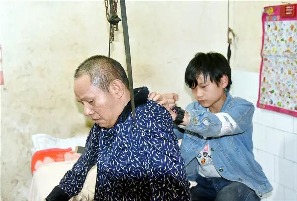 他每天都要借助滑輪讓爸爸坐起來一會,換一換身體的姿勢。