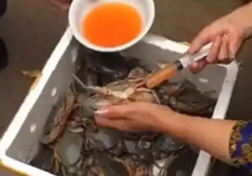 網(wǎng)傳,市面上有無良商販為了增重而將注過水的“針孔螃蟹”出售,現(xiàn)場試驗證明,給大閘蟹注水,螃蟹極易死亡,賠本的買賣誰做?