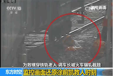 監(jiān)控畫面:徐前凱將老人推出鐵軌 自己右腿卻來不及抽出