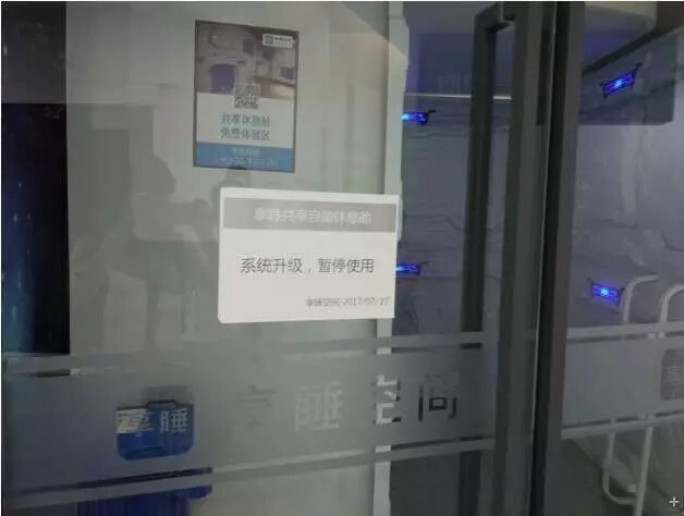 7月16日,有媒體報(bào)道稱,位于北京市中關(guān)村創(chuàng)客公社的一處“共享睡眠艙”被警方查封。當(dāng)天下午,記者撥打此處“共享床鋪”的客服電話,客服人員稱:只有中關(guān)村創(chuàng)客公社的點(diǎn)還在體驗(yàn)。然而,記者17日上午來(lái)到這里時(shí)發(fā)現(xiàn),睡眠艙門口貼出了“程序升級(jí),暫停使用”的通知。
