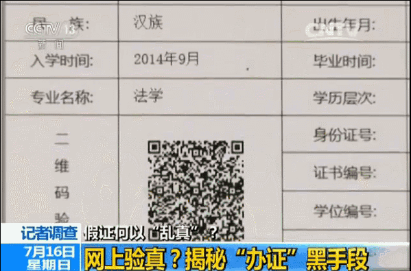 知情人透露,首先為不符合審核標(biāo)準(zhǔn)的人印制假證書,再通過黑客手段把證書信息的查詢鏈接“塞進(jìn)”官方網(wǎng)站,如果官網(wǎng)難以侵入,就“山寨”一個(gè)仿冒的官網(wǎng)。種種手段,只為給假證書制造一個(gè)“上網(wǎng)可查”的假象。記者發(fā)現(xiàn),有些“學(xué)歷認(rèn)證”甚至還設(shè)計(jì)了二維碼,可以通過手機(jī)掃描再次“驗(yàn)真”。