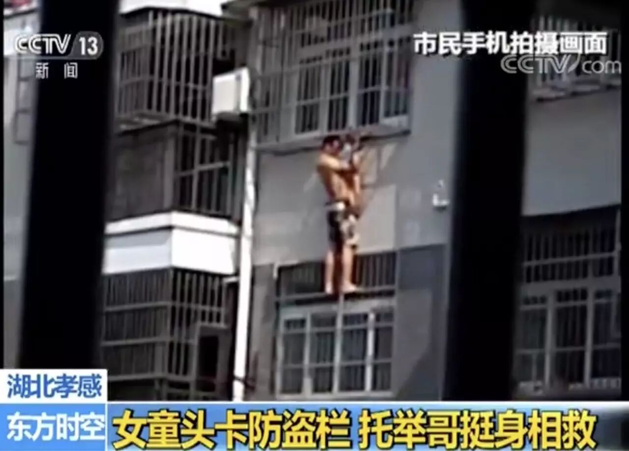 女孩頭卡防盜欄命懸一線 他徒手爬樓托舉女孩