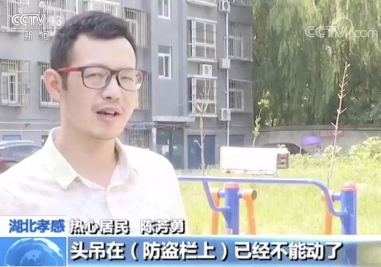 這位熱心的“托舉哥”名叫陳芳勇,他說當(dāng)時看到小孩已經(jīng)很危險(xiǎn)了,頭吊在防盜欄上不能動,下面雖然有人拉著被單,但等到孩子掉下來就晚了,所以他立刻順著防盜網(wǎng)爬上去。當(dāng)時什么都沒有想,一心只是想著救孩子。