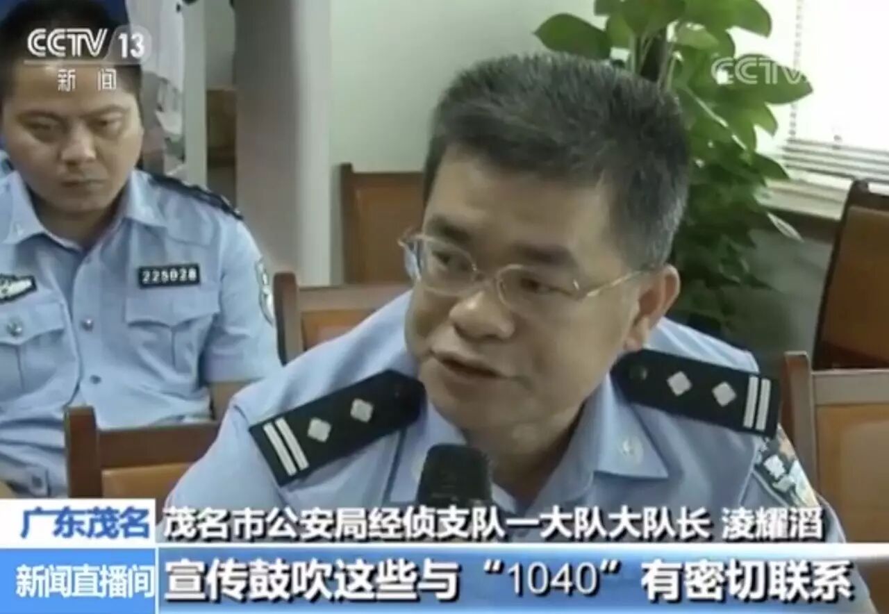 據(jù)茂名市公安局經(jīng)偵支隊(duì)一大隊(duì)大隊(duì)長淩耀滔介紹,傳銷人員第一步就進(jìn)行三天的集中“洗腦”,走12個(gè)流程,之后帶所有被騙去的人員到廣西的風(fēng)景區(qū),還有北海的金融區(qū)參觀,宣傳鼓吹這些與“1040”有密切聯(lián)系。