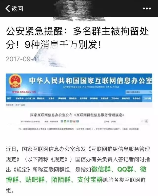 而且,《規(guī)定》10月8日才開始生效,此前受到刑事或其他行政處罰的群主,均是群主自身違法所致,與《規(guī)定》無(wú)關(guān)。