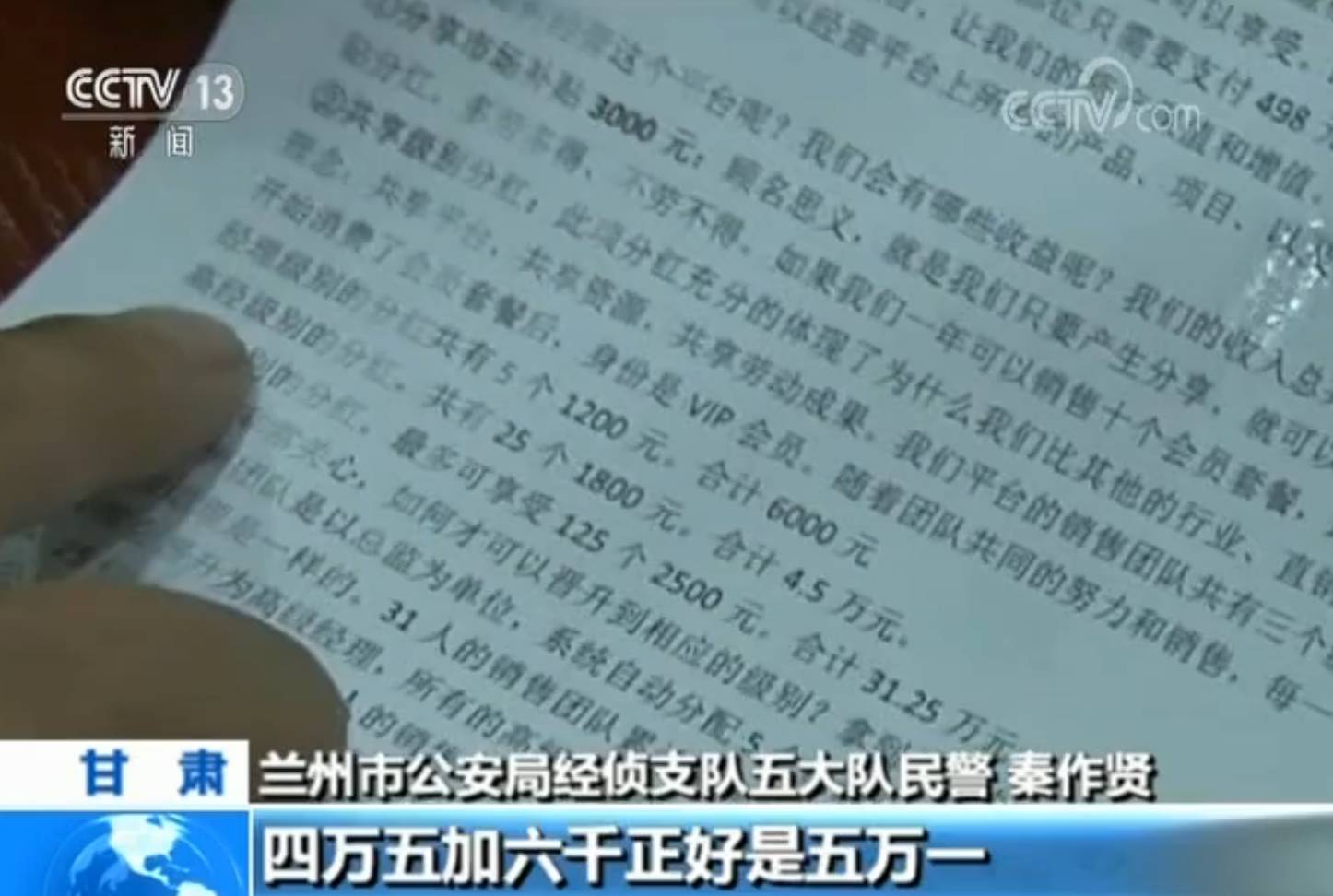 而對(duì)于宣傳中所說(shuō)的會(huì)員最終能拿到51000元高額分紅,民警明確表示,想做到這一點(diǎn),就只能吸引大量顧客購(gòu)買(mǎi)產(chǎn)品,才能有機(jī)會(huì)滿(mǎn)足上層極少數(shù)一部分人的分紅,而后面人的分紅是無(wú)法保障的。