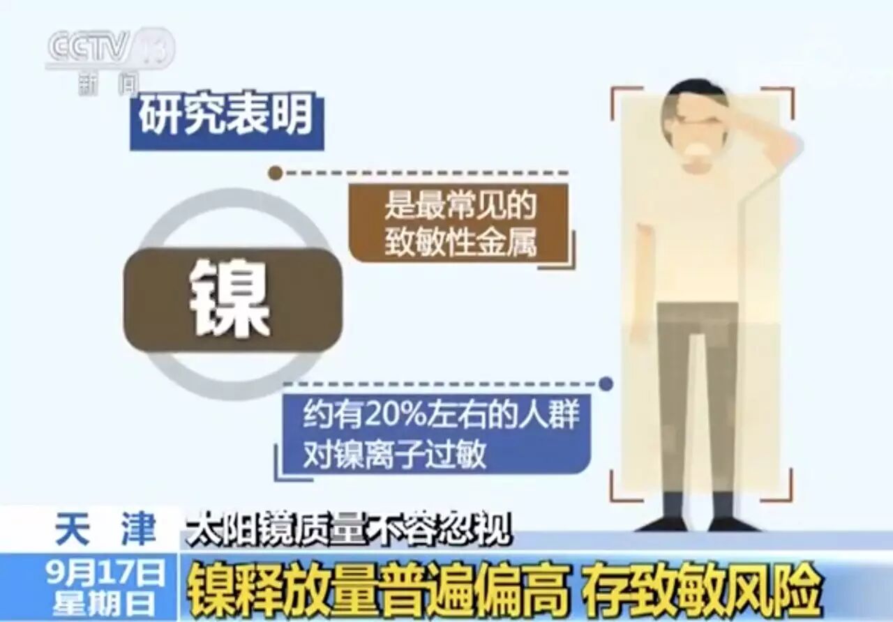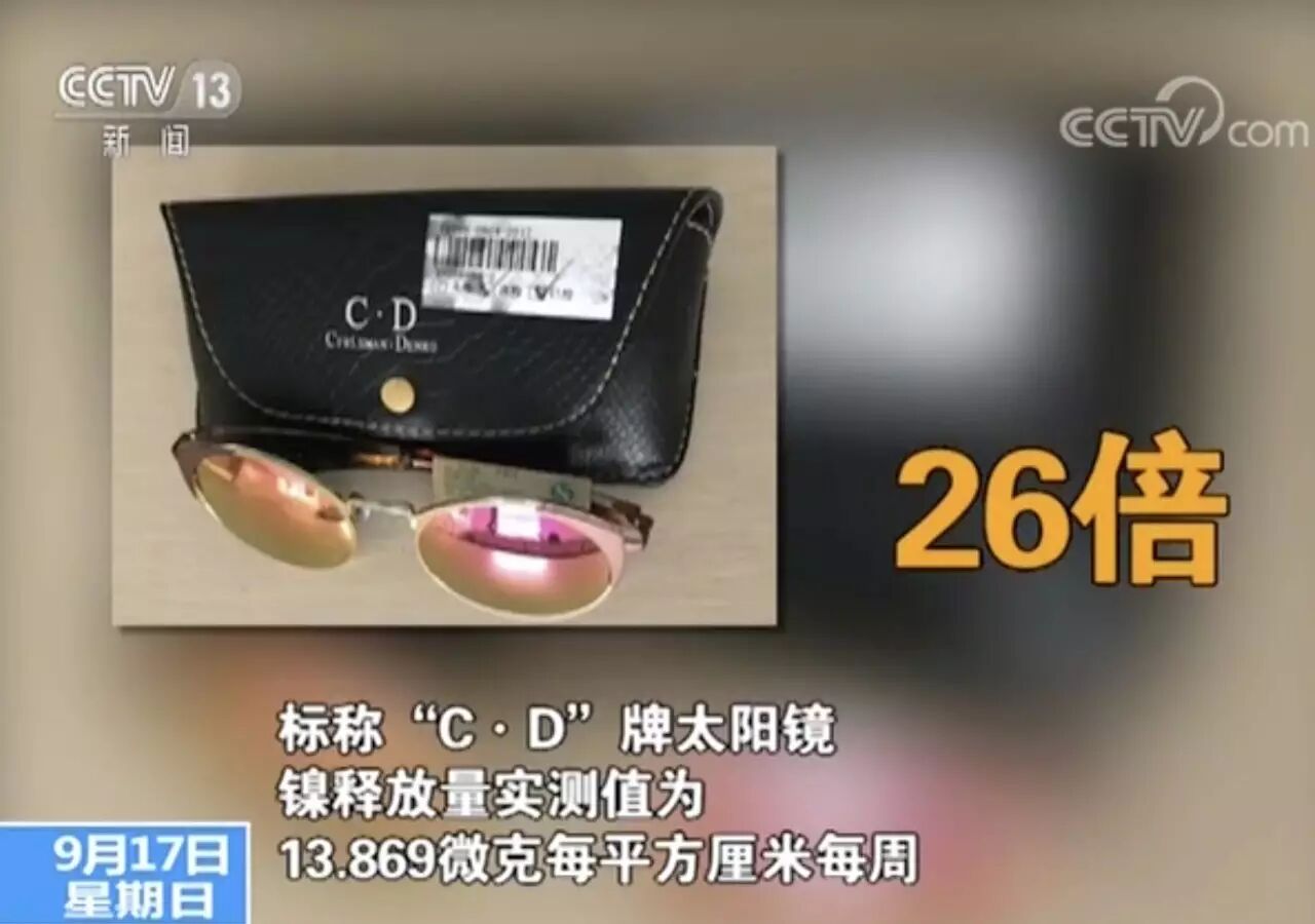 結(jié)果經(jīng)過(guò)檢測(cè),25組金屬鏡架樣品中,有13組樣品的鎳釋放量實(shí)測(cè)值都高于0.5微克每平方厘米每周,其中標(biāo)稱(chēng)為“凱嵐”牌太陽(yáng)鏡鎳釋放量實(shí)測(cè)值最高,為23微克每平方厘米每周,是參考限值的46倍;