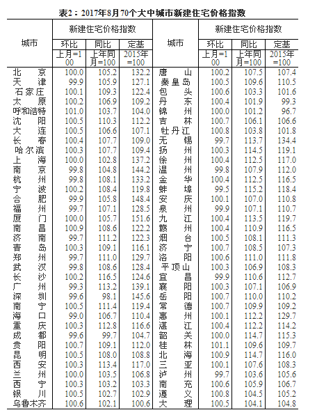 國家統(tǒng)計局今日發(fā)布了2017年8月份70個大中城市住宅銷售價格統(tǒng)計數(shù)據(jù)。