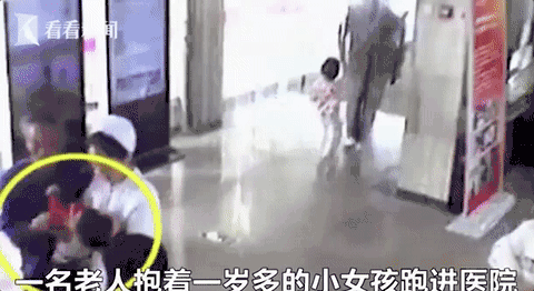 一位身穿藍色上衣的大爺抱著一名1歲多的小女孩跑進門診大廳入口處,他焦急地喊著:“大夫,你快看看我的孩子咋了?”