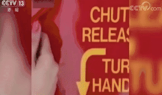 再來看一幅演示動圖,圖中的“受害者”在逃離逃生滑道時確實有些不“通暢”,網(wǎng)友的質疑不無道理……