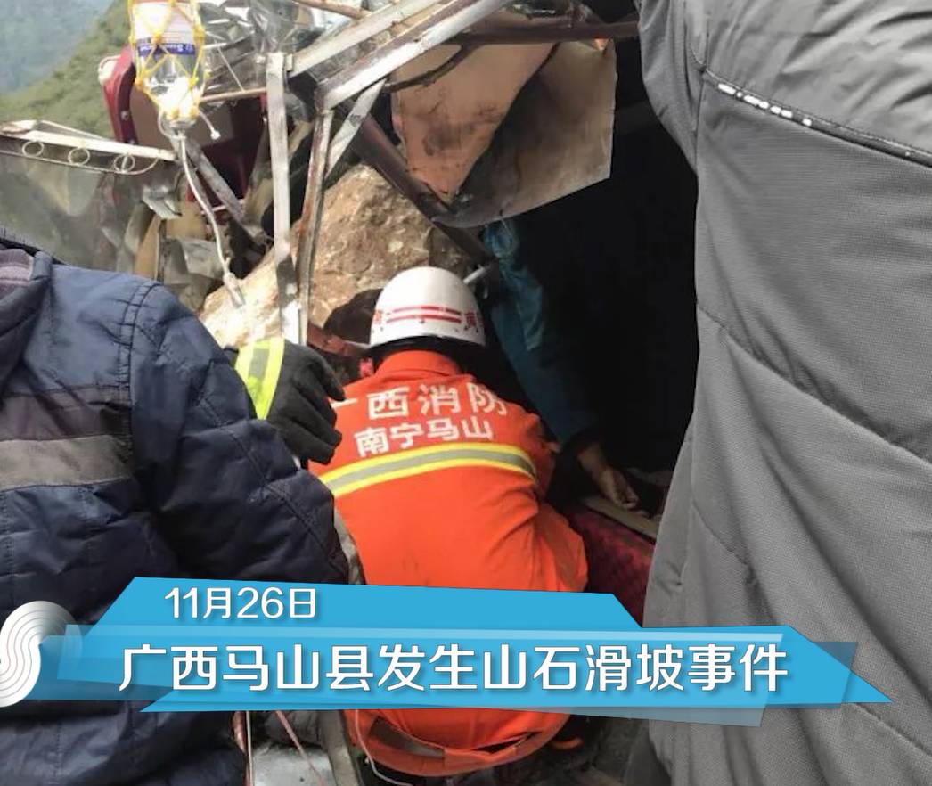 11月26日9時左右,廣西南寧市馬山縣發(fā)生一起山石滑落砸中行人、車輛的事件,目前已造成6人死亡9人受傷。