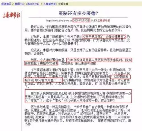 2000年3月,《三秦都市報》曾以《孩子意外死亡 父母慘遭暴打》為題對周至縣人民醫(yī)院毆打農(nóng)民患者的行為進行報道。然而,這篇負面報道遭到了周至縣人民醫(yī)院的“回擊”。該醫(yī)院掛橫幅辱罵記者。