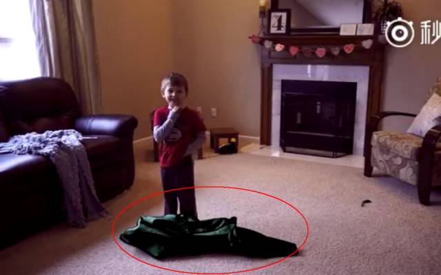 其實(shí),這類“隱身衣”視頻在網(wǎng)上流傳很多。比如下面這個(gè)動(dòng)圖中,一位父親給孩子拍攝了“隱身衣”視頻。在視頻的最后,這件“隱身衣”露出了原形,原來就是一塊綠布。