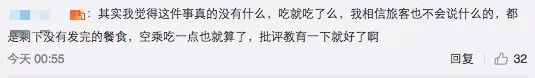 對此事件,網(wǎng)友們眾說紛紜。有網(wǎng)友對航空公司的處理表示贊同。也有網(wǎng)友為視頻中的空姐打抱不平:剩余的餐食本來就是要扔掉的,空姐吃了點又何妨?不至于受到這么大的處分。還有網(wǎng)友追問,為何會剩余這么多餐食?飛機(jī)餐的配送流程究竟是怎樣的?