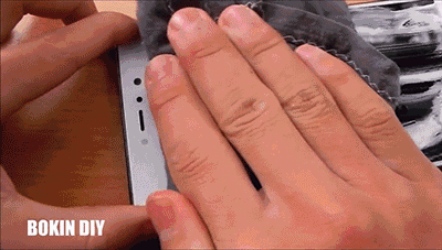 2、用刮片將玻璃膠均勻涂抹在屏幕上,留下薄薄的一層玻璃膠。