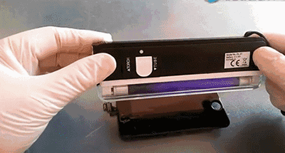 3、用紫外線燈照射屏幕10-15分鐘,讓膠水固化。