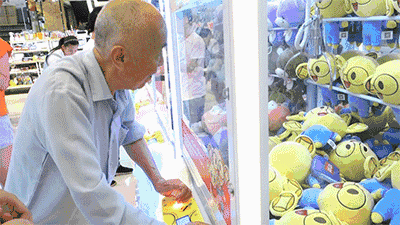 由于游戲的操作步驟也很簡單,更多的人群參與進(jìn)抓娃娃的大軍中,比如下面這位老爺爺↓↓