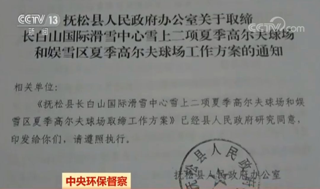 今年8月,中央第一環(huán)境保護(hù)督察組進(jìn)駐吉林省,發(fā)現(xiàn)這里存在違規(guī)建設(shè)、違規(guī)經(jīng)營問題。10月1日,高爾夫球場所在的撫松縣政府下達(dá)取締函,要求松谷球場和白樺球場消除高爾夫球場一切特征,原有土地按照規(guī)劃恢復(fù)原批復(fù)用途。