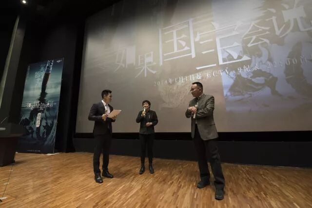 △ 中央民族大學(xué)潘守永教授(中)、主持人何巖柯(右一)和導(dǎo)演寇慧文(左一)暢談《國寶》