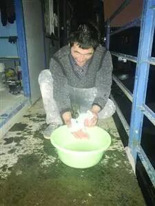 “我們一般中午都是隨便吃吃,晚上再回來好好吃,兩個人花10塊錢買一盒菜,再花2塊錢買4個饅頭,一個人只要花6塊錢,比食堂劃算得多。”老葛說。每天晚上吃完晚飯后,老葛還要耐心地花上一段時間,在工地里的熱水機(jī)前排隊打熱水。因為打熱水的人多,水箱里的水很多時候只有六七十?dāng)z氏度了,這個水不能喝,老葛就會先接上滿滿一桶,用來洗頭發(fā)、洗臉、洗腳、洗衣服。等到人少時,水開了,再去接一瓶滾燙的水,用來喝。