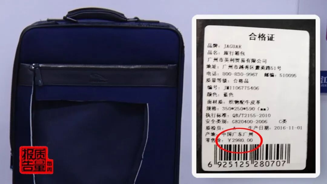 標(biāo)價2980元的箱包,一項監(jiān)測就報廢