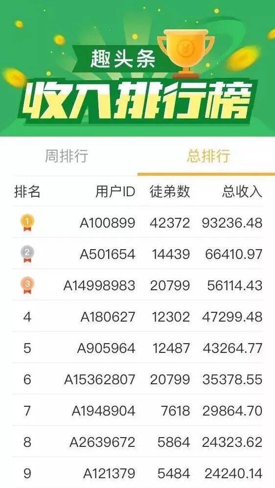 記者打開某新聞資訊APP,其公開的排行榜顯示,目前總排行第一的用戶,總收入超過了93200元,收徒數(shù)超過了四萬(wàn)。