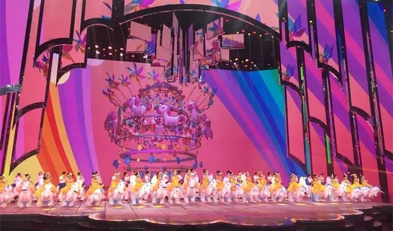 晚會總時長100分鐘,包括歌曲、舞蹈、戲曲、雜技、武術(shù)、魔術(shù)、朗誦、音樂劇等多種藝術(shù)表現(xiàn)形式,節(jié)目類型豐富、構(gòu)成多元,舞臺呈現(xiàn)國際化,充滿科技感。在充分利用央視一號演播廳現(xiàn)有燈光、舞美設(shè)施的基礎(chǔ)上,晚會全新設(shè)計了舞臺上空吊掛的放射狀花蕊造型LED屏,通過多屏組合、升降運動構(gòu)造出立體多變的舞臺空間,配合增強現(xiàn)實等高科技手段,營造出更符合兒童特點的花朵盛放的舞臺意境,呼應(yīng)“花開新時代”的主題氛圍。