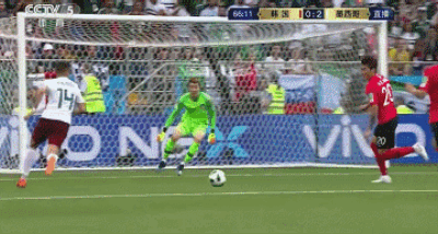 下半場率先發(fā)難的又是墨西哥。第66分鐘,洛薩諾反擊中斜傳,埃爾南德斯禁區(qū)左肋10碼處扣過張賢秀后射入近角,2-0。