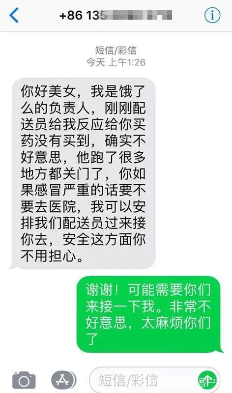 女孩獨自在家突發(fā)高燒 點外賣拜托外賣小哥買藥